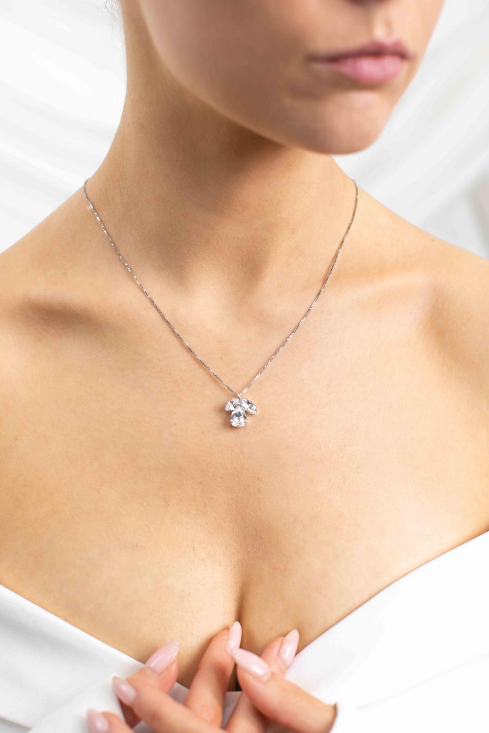 De Anna Ketting is een schitterende ketting voor je trouwdag, de hanger is gemaakt van prachtige Swarovski kristallen en duurzaam messing, en hangt aan een verfijnde Venetiaanse schakelketting van 925 sterling zilver. Beschikbaar met een rhodium of 14kt gouden plating, en in een lengte van 42cm of 50cm. Interesse in een set? Bekijk dan ook de Anna oorbellen.