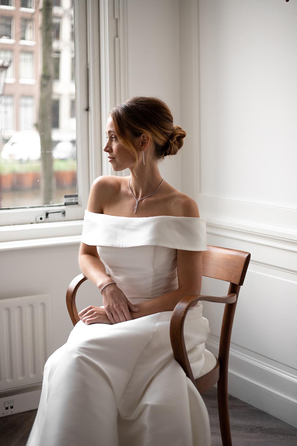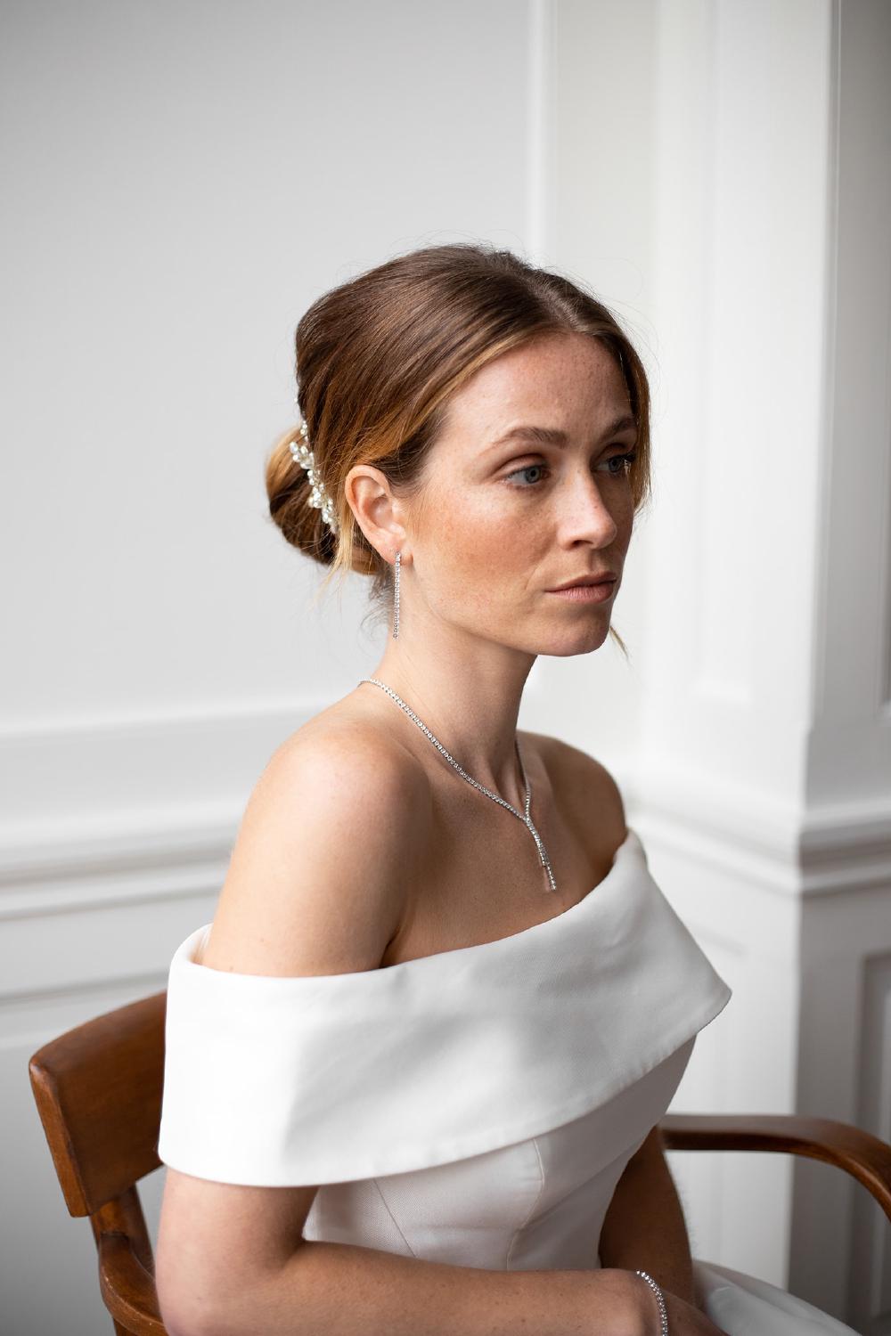 De Jet ketting is een verfijnde ketting met een enkele rij kristallen. Het perfecte sieraad voor de moderne bruid. De Jet Ketting is verkrijgbaar met rhodium, rosé goud of 14kt goud plating. Ben je op zoek naar een bruidssieraden set, bekijk dan zeker ook de Jet oorbellen.