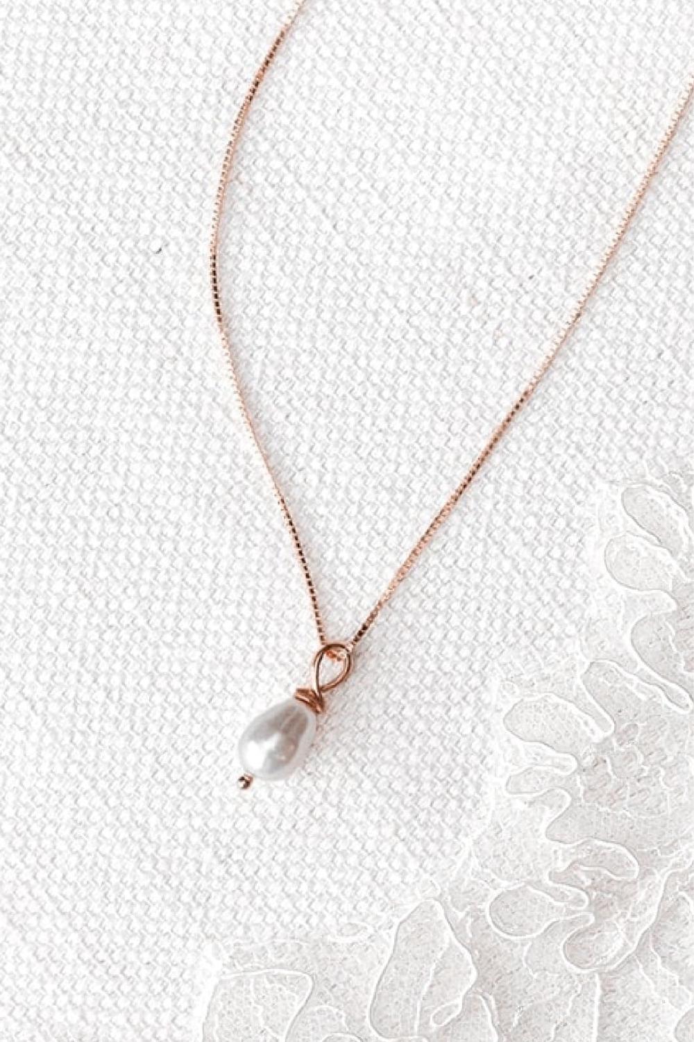 De Julie Ketting is een verfijnd en prachtig eenvoudig bruidssieraad. Door de elegante, druppelvormige Swarovski parel aan de dunne box chain ketting is deze halsketting gemakkelijk te dragen op je trouwdag. De Julie Necklace is verkrijgbaar in twee lengtes zodat hij makkelijk te stylen is met je trouwjurk, en met rhodium, 14kt goud of roségoud plating.