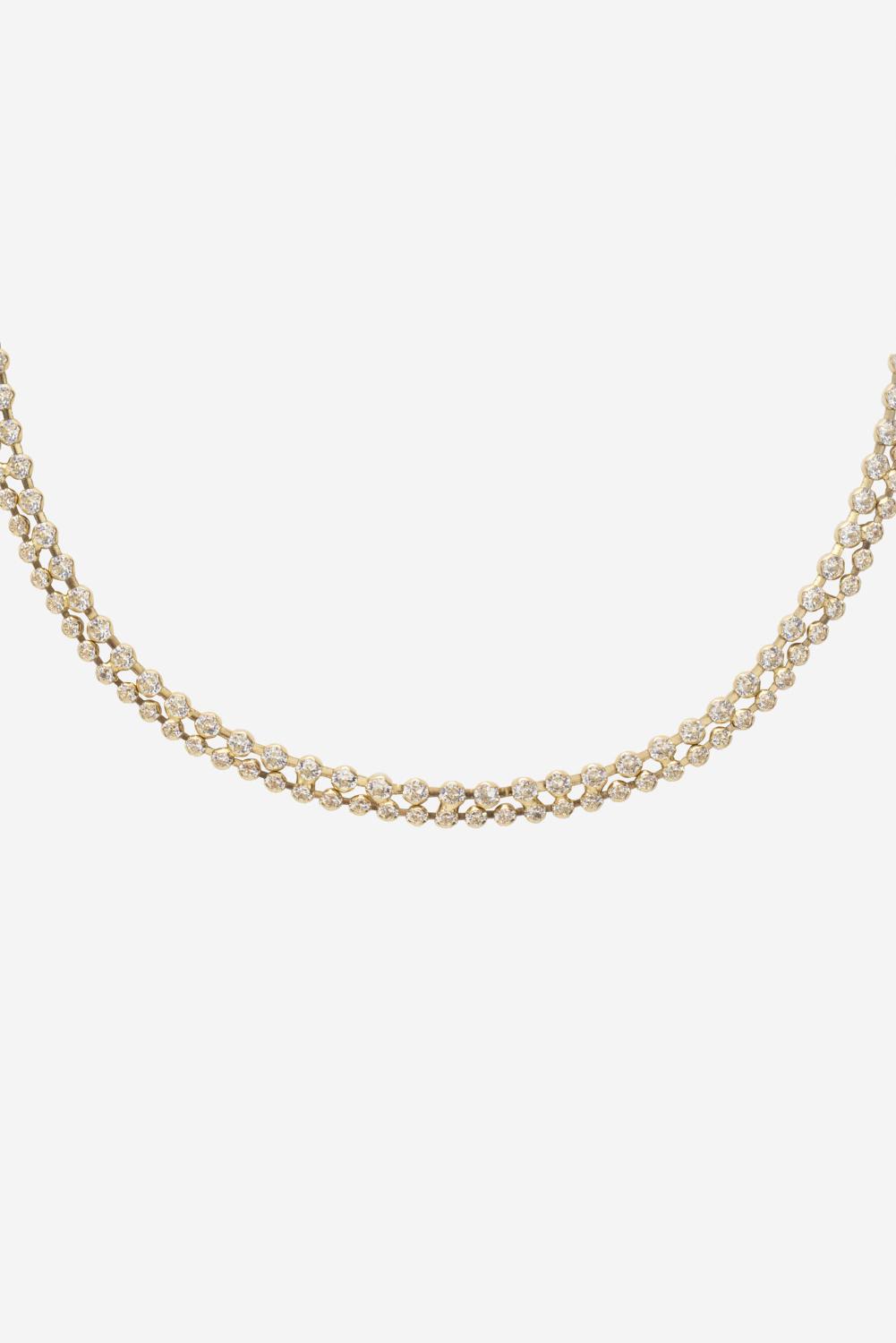 De Lofty Ketting is een klassieker van Abrazi die al jaren en jaren meegaat. Met een dubbele rij prachtige kleine kristallen is de Lofty ketting gegarandeerd een blikvanger op je trouwdag. Dit stuk is gemaakt van duurzaam messing en verkrijgbaar met rhodium, 14kt goud of rosé-gouden plating. Als je op zoek bent naar een bruidssieraden set, bekijk dan zeker ook de Lofty armband.