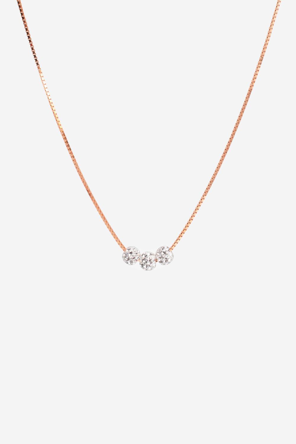 Deze verfijnde schakelketting heeft drie kleine kralen in het midden die versierd zijn met kleine kristallen. Deze ketting gesmeed uit sterling zilver en wordt gesloten met een gezekerde veersluiting. Een subtiele en klassieke ketting, die fijn is om te dragen en gemakkelijk te combineren. Verkrijgbaar met een plating van rhodium, 14 kt goud, of rosé-goud.