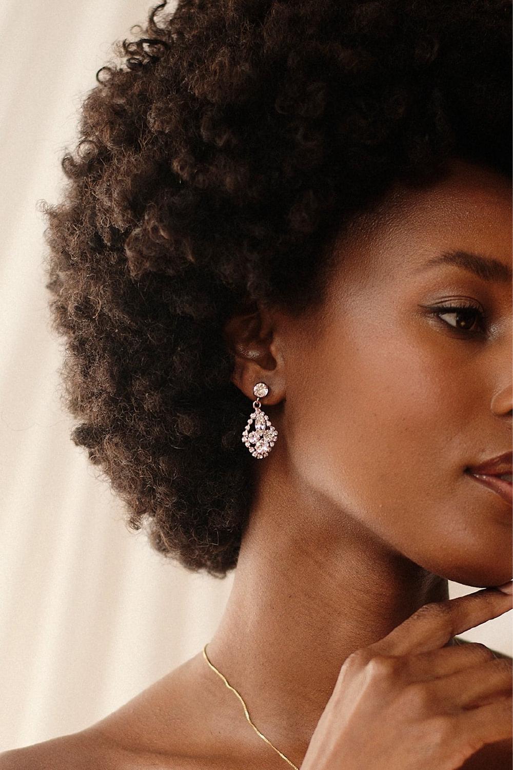 De Adele Earrings zijn echte statement oorbellen voor de bruid gemaakt met Swarovski kristallen, gezet in duurzaam messing. Deze prachtige niet-zo-subtiele bruidsoorbellen zijn verkrijgbaar met een rhodium, 14kt gouden of roségouden plating. Als u op zoek bent naar een maatje groter, hebben we die ook.