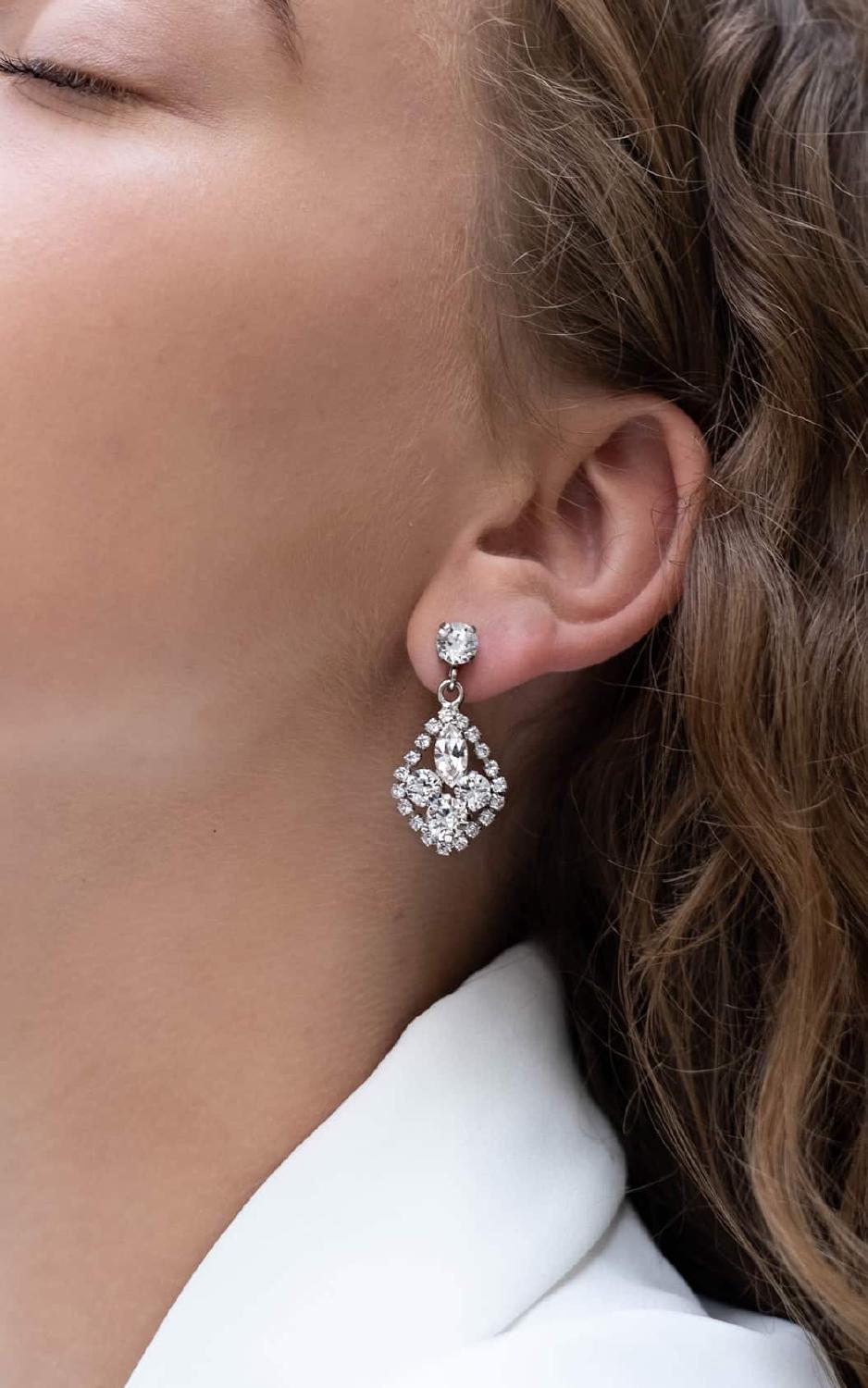 De Adele Earrings zijn echte statement oorbellen voor de bruid gemaakt met Swarovski kristallen, gezet in duurzaam messing. Deze prachtige niet-zo-subtiele bruidsoorbellen zijn verkrijgbaar met een rhodium, 14kt gouden of roségouden plating. Als u op zoek bent naar een maatje groter, hebben we die ook.