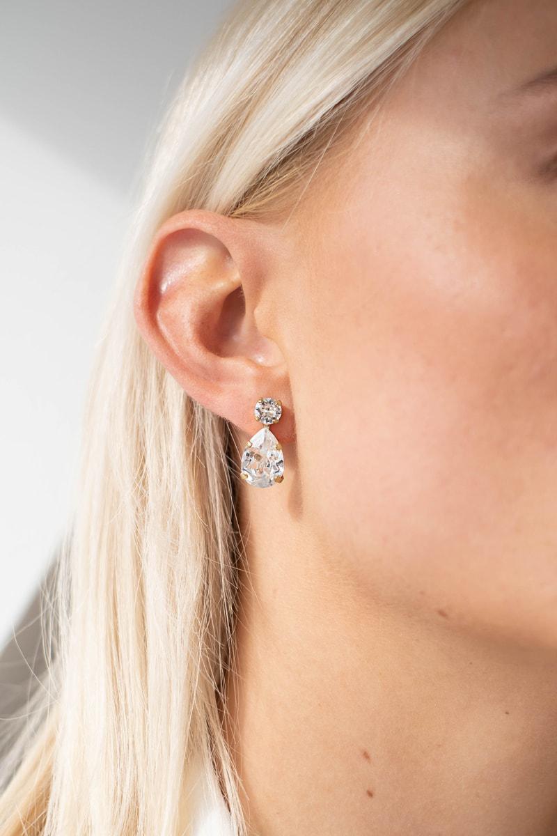 De Maddie Oorbellen zijn het kleinere zusje van onze klassieke Sophia Oorbellen, echte Abrazi-originelen met peervormige Swarovski ** ** kristallen. Ze zijn verkrijgbaar met een plating van rhodium, 14 kt goud of roségoud.