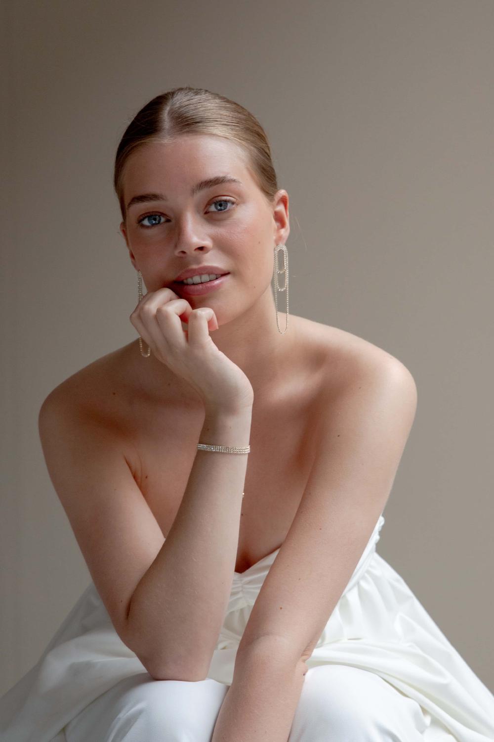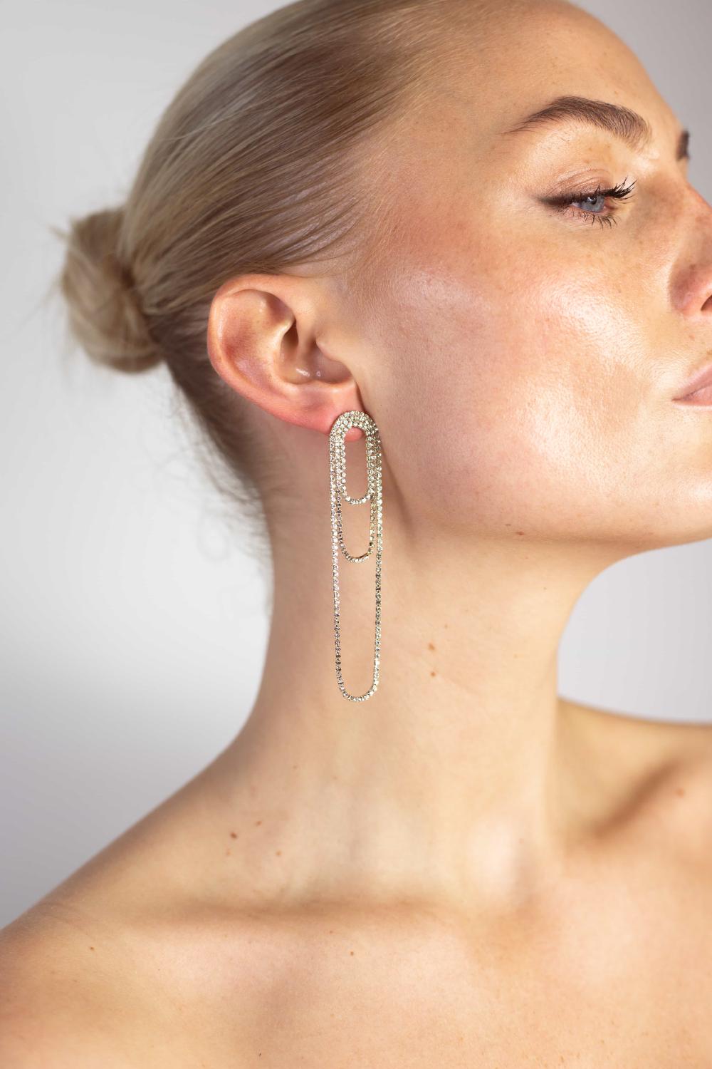 De Max Oorbellen: de dochter van de Bieke oorbellen. Ware statement oorbellen die een onmisbare aanwinst zijn voor je sieradencollectie. Deze opvallende oorbellen zijn perfect voor je trouwdag en andere bijzondere gelegenheden. Vervaardigd met de meest verfijnde kristallen chain. Beschikbaar met een plating van rhodium of 14-karaats goud.