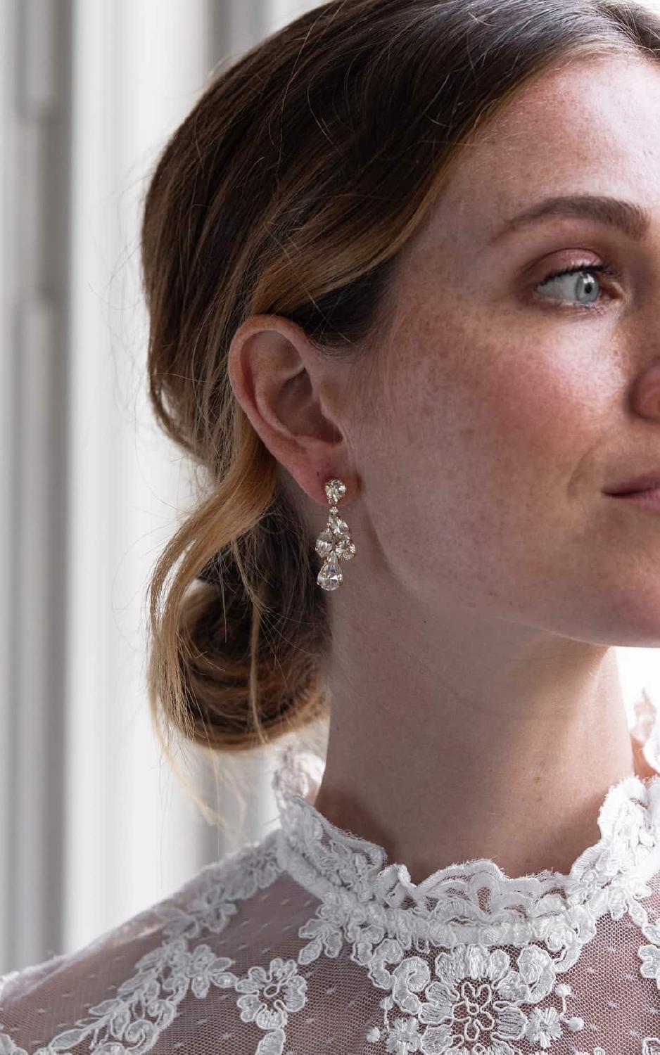 De Zoe Oorbellen zijn echte statement bruidsoorbellen gemaakt met hoogwaardige kristallen en stevig messing. Deze prachtige niet-zo-subtiele oorbellen voor je bruiloft zijn verkrijgbaar met een rhodium, 14kt gouden of roségouden plating.