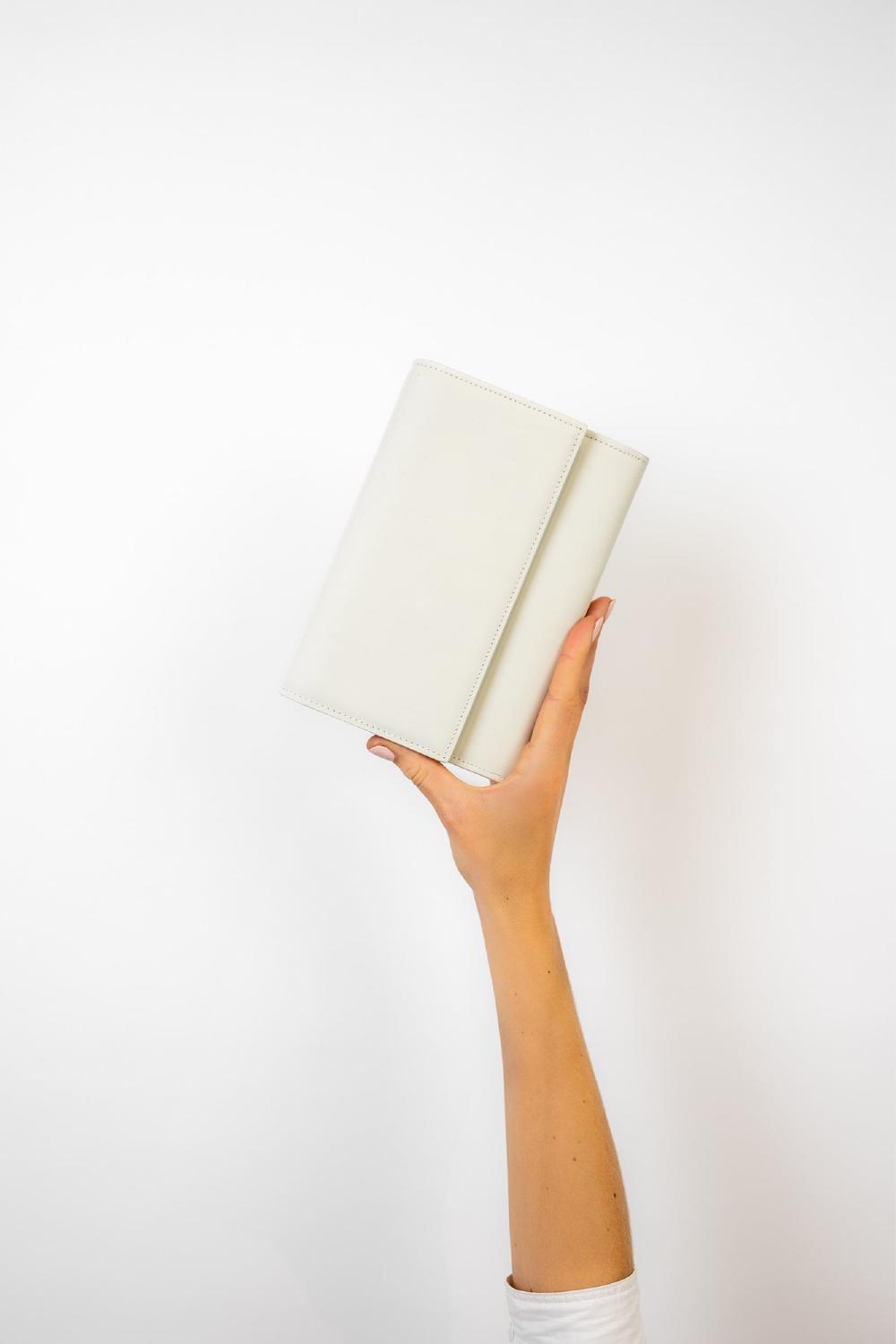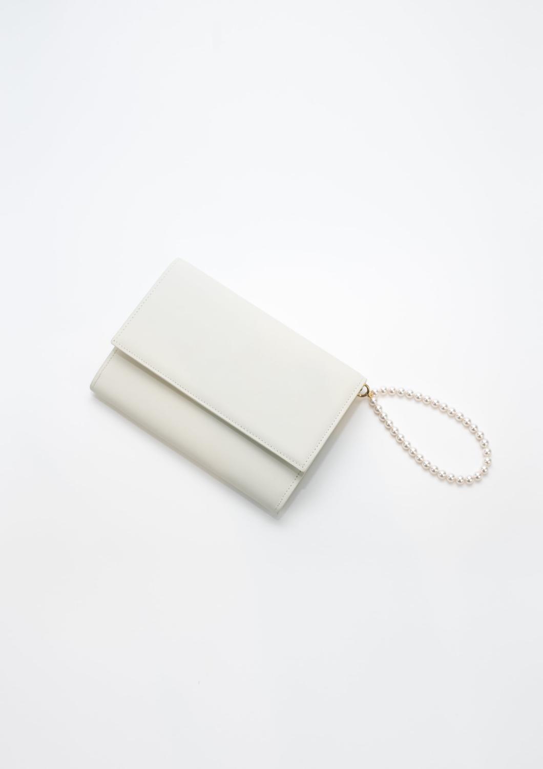De Jackie Clutch, gemaakt van leer van de fijnste kwaliteit, is een ongelooflijk veelzijdig en draagbaar item. Het minimalistische ontwerp heeft een afneembare schouderband en polsband, een spiegeltje en een rits aan de binnenkant, en een magnetische kliksluiting. De schouderband is gemaakt van leer, de polsband heeft een enkele streng parels. Perfect voor een avondje uit.
