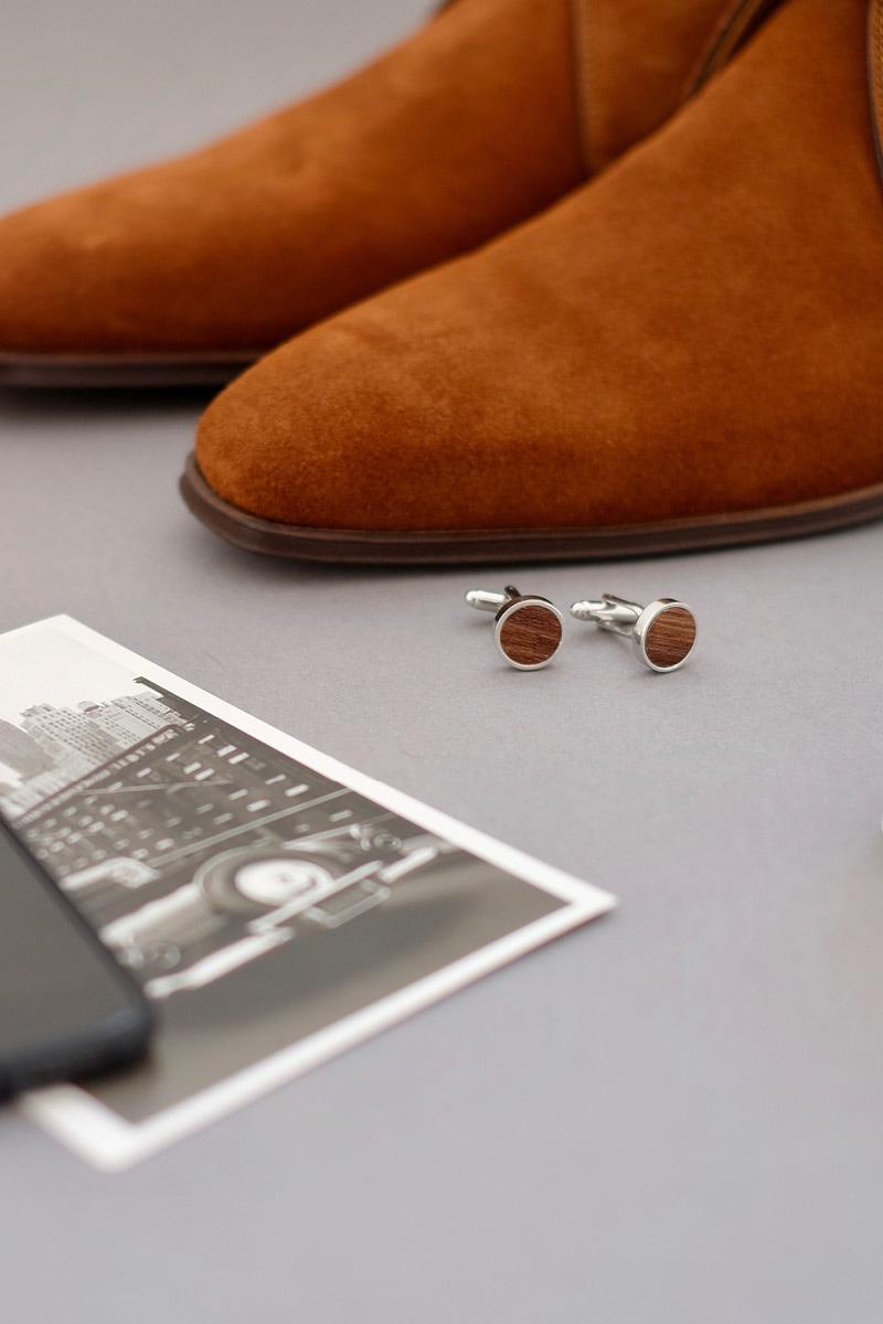 Abrazi's Houten Manchetknopen, verkrijgbaar in verschillende kleuren en vormen, zijn een verfijnde keuze met een vintage uitstraling. Deze manchetknopen zijn gemaakt van echt houten fineer en gerhodineerd messing.