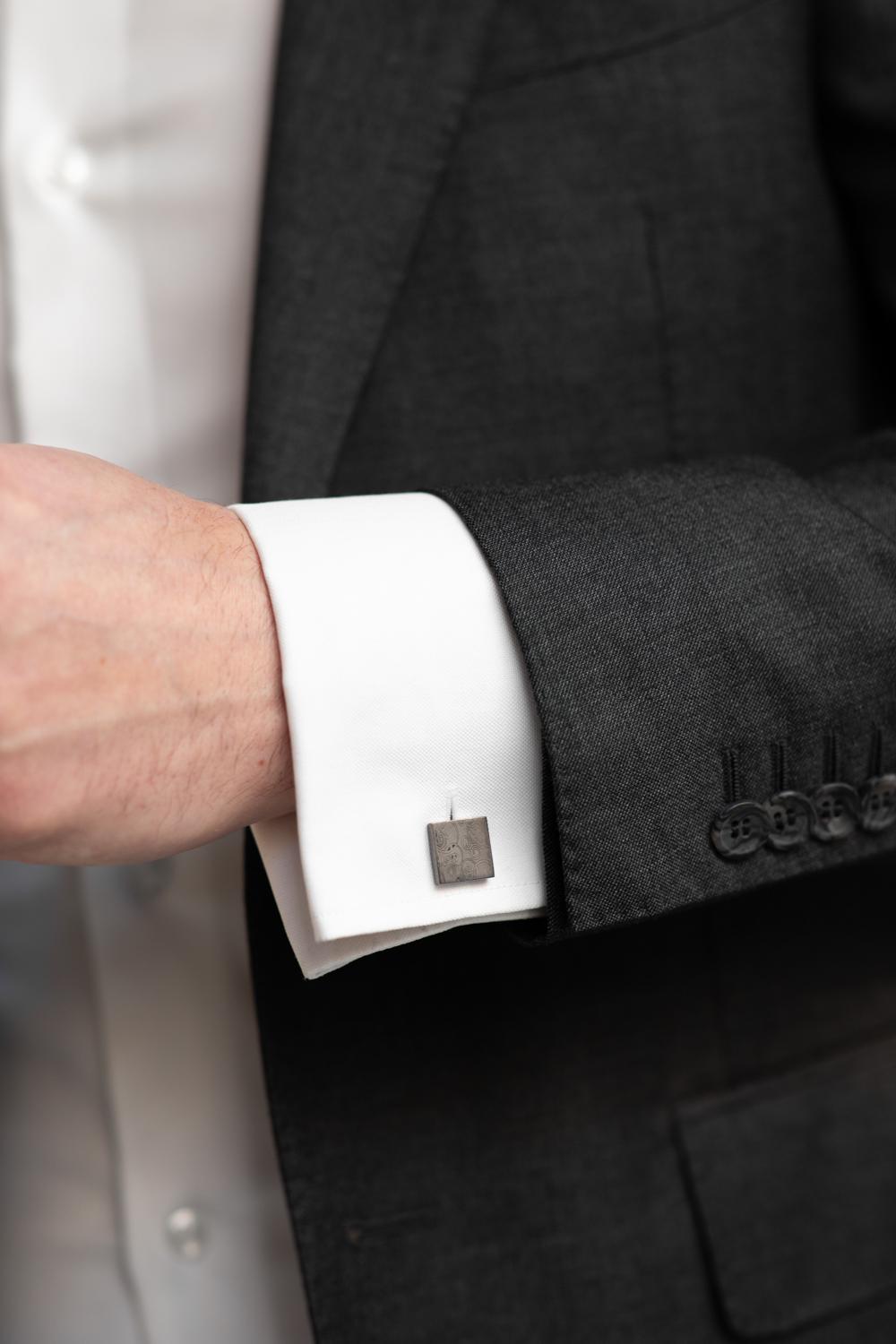 De Window Manchetknopen zijn een klassiek ontwerp met een elegant patroon, gemaakt voor de herencollectie van Abrazi van gerhodineerd messing en zwart emaille.