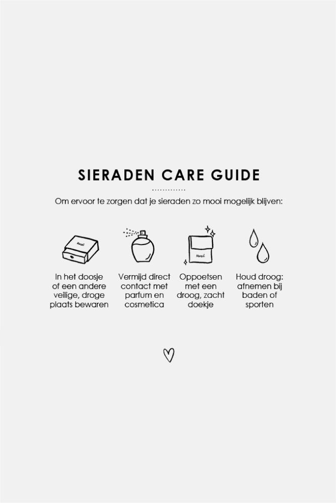 Je kunt je sieraden het beste afdoen voor het douchen, baden, sporten, slapen en zwemmen. Wees extra voorzichtig met zwembadwater (chloor) en zeewater, want dit kan je sieraden aantasten.