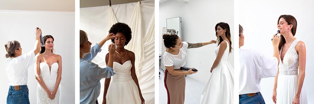 Op de bruiloft zelf maak ik vaak alleen de bruid op, alles moet direct goed zitten. Bij een shoot kan je tussendoor haartjes en make-up corrigeren, maar bij een bruiloft gaat dat natuurlijk niet. Alles moet goed voorbereid worden zodat het de hele dag blijft zitten. Het gebeurt niet heel vaak, maar soms is er een extra visagiste mee die de moeder, zussen of schoonmoeder opmaakt. Dat is een extra optie die wij de ‘beloved ones’ noemen.”